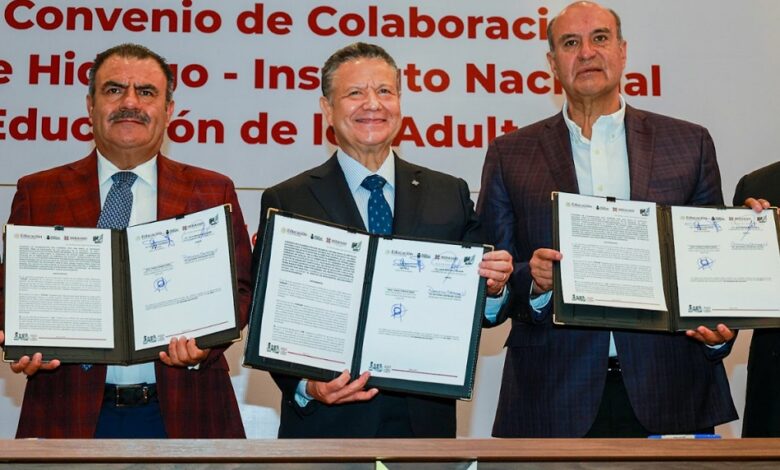 PACHUCA DE SOTO, 21 NOV/NEWS HIDALGO/.- El Gobernador Julio Menchaca Salazar encabezó esta mañana la firma de un convenio de colaboración, entre el Gobierno del Estado de Hidalgo y el Instituto Nacional para la Educación de los Adultos.