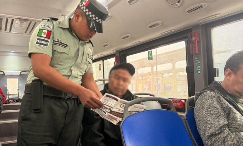 En apego al modelo de proximidad social, el personal se identifica con los pasajeros y solicita autorización para realizar la revisión de pertenencias, además de invitarlos a utilizar el número telefónico 088 de atención ciudadana.