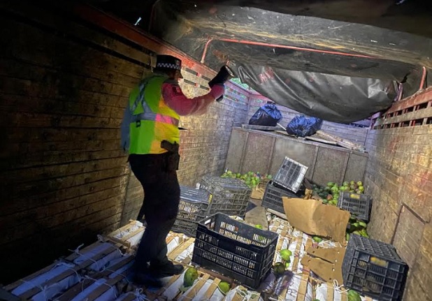El personal de la Guardia Nacional llevó a cabo una inspección dentro del área de carga del camión, localizando nueve bultos similares, ocultos entre cajas con fruta. En la zona se desplegó un operativo de búsqueda del conductor o de los posibles ocupantes de la unidad, sin obtener resultados positivos.