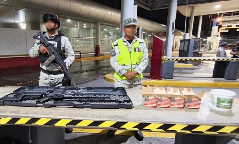 En el portaequipaje localizaron un estuche con un arma larga, una mira holográfica y un cañón con guardamano, además de un cargador y aproximadamente 1,163 cartuchos útiles.