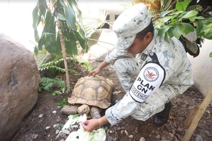CIUDAD DE MÉXICO, 05 NOV/NEWS HIDALGO/.- En el marco del Plan de Asistencia a la Sociedad en Casos de Emergencia (Plan GN-A), en el estado de Guerrero, integrantes de la Guardia Nacional (GN) localizaron en la zona Diamante de Acapulco, una tortuga de tierra que se extravió durante el impacto del huracán Otis.