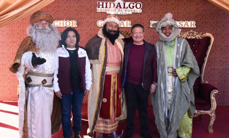 PACHUCA DE SOTO, 06 ENE/NEWS HIDALGO/.- Para concluir con los festejos de la temporada, el gobernador de Hidalgo, Julio Menchaca Salazar, la presidenta del Patronato del Sistema DIF Hidalgo, Edda Vite Ramos, el secretario de Gobierno, Guillermo Olivares Reyna, el titular de la Oficialía Mayor, Orlando Ángeles Pérez, así como otros integrantes del gabinete estatal, realizaron el tradicional corte de la rosca de Reyes, en la Plaza Juárez de Pachuca.