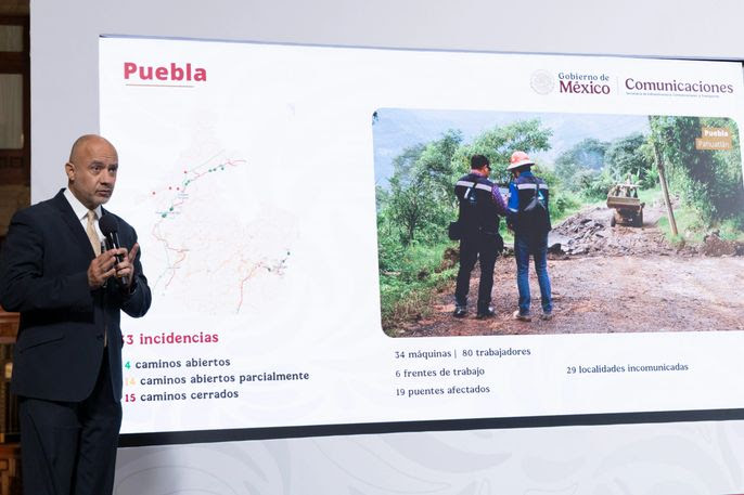 “Estamos con todo apoyando para la apertura de los caminos estatales y municipales, ahora es prioridad abrir los caminos y después ya vendrá la etapa de reconstrucción formal”, explicó en la conferencia matutina: “Las mañaneras del pueblo.