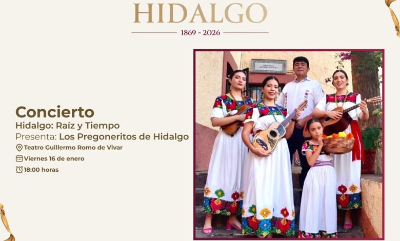La programación iniciará el viernes 16 de enero, a las 18:00 horas, en el Teatro Guillermo Romo de Vivar, con el concierto Hidalgo: Raíz y Tiempo, a cargo de Los Pregoneritos de Hidalgo, una propuesta musical que recupera sonoridades tradicionales y expresiones que dialogan con la herencia cultural de la entidad.
