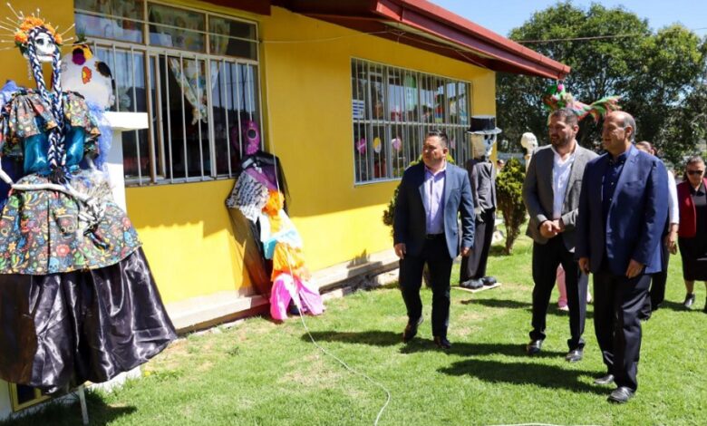 Durante su visita a Mineral del Monte, el secretario también recorrió el jardín de niños Metzeri, donde convivió con niñas, niños, docentes y padres de familia, y constató las actividades que realizan para fortalecer en los alumnos las tradiciones mexicanas, como la celebración del Día de Muertos.