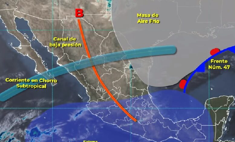 El sistema frontal número 47 que se mantendrá con características de estacionario sobre el occidente del Golfo de México y el sur de Veracruz, su masa de aire frío asociada, divergencia en altura, la entrada de humedad proveniente de dicho golfo y del Océano Pacífico, así como un canal de baja presión, son los sistemas meteorológicos que propiciarán las condiciones descritas.