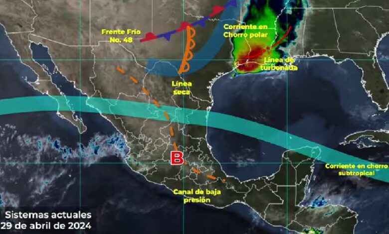 Canales de baja presión sobre el noreste y el interior del país, en interacción con una línea seca en norte de la República Mexicana y el ingreso de humedad de ambos océanos, ocasionarán lluvias fuertes (de 25 a 50 milímetros [mm]) en Chiapas, Oaxaca y Tamaulipas, así como chubascos (de 5 a 25 mm) en Campeche, Coahuila,