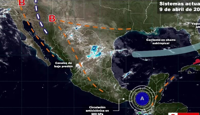 PACHUCA DE SOTO, 09 ABR/NEWS HIDALGO/.- Hoy jueves, una vaguada en altura, inestabilidad atmosférica y canales de baja presión generarán lluvias muy fuertes (de 50 a 75 milímetros [mm]) en zonas de Coahuila, Nuevo León y Tamaulipas; fuertes (de 25 a 50 mm) en Hidalgo, Estado de México, Tlaxcala, Puebla, Veracruz, Oaxaca, el este de Chihuahua, este de San Luis Potosí y el norte de Querétaro; chubascos (de 5 a 25 mm) en Durango, Zacatecas, Guanajuato, Ciudad de México, Morelos, Guerrero, Chiapas, Tabasco, Campeche, Yucatán y Quintana Roo, y lluvias aisladas (de 0.1 a 5 mm) en Michoacán.