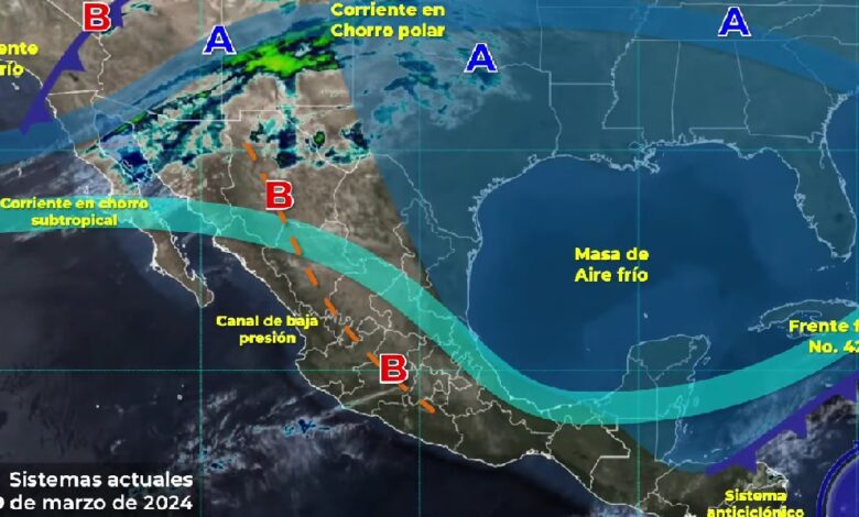 PACHUCA DE SOTO, 29 MAR/NEWS HIDALGO/.- Para esta mañana, se espera que una línea seca sobre el norte de México en interacción con la corriente en chorro subtropical ocasione fuertes rachas de viento en la Mesa del Norte, Mesa Central y en el occidente del territorio nacional, con rachas de 60 a 80 kilómetros por hora (km/h) en Chihuahua y Sonora; por otra parte, la masa de aire frío que impulsó al frente número 42 generará viento de