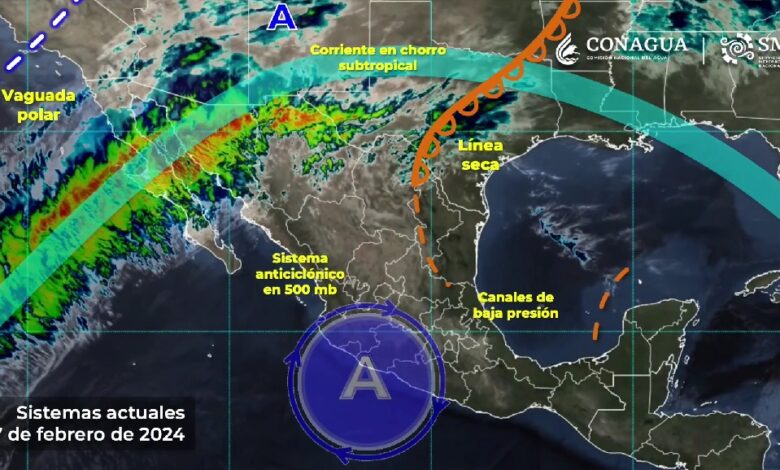 PACHUCA DE SOTO, 27 FEB/NEWS HIDALGO/.- Hoy, una vaguada polar sobre Baja California y la humedad que arrastra la corriente en chorro subtropical ocasionarán lluvias fuertes (de 25 a 50 milímetros [mm]) en