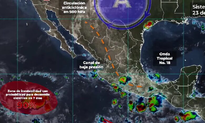 PACHUCA DE SOTO, 23 AGO/NEWS HIDALGO/.- Hoy, se prevé que canales de baja presión sobre la mesa del Norte, la mesa Central, el sureste mexicano y la península de Yucatán, así como el paso de la onda tropical número 18 sobre el centro, sur y el occidente de México, aunados al ingreso de humedad del océano Pacífico, golfo de México y mar Caribe, y al monzón mexicano, originen lluvias puntuales intensas (de 75 a 150 milímetros [mm]) en Guerrero, Jalisco, Nayarit y Oaxaca, y muy fuertes (de 50 a 75 mm) en Ciudad de México, Chiapas, Colima, Estado de México, Michoacán, Morelos, Puebla, Sinaloa, Sonora y Veracruz.