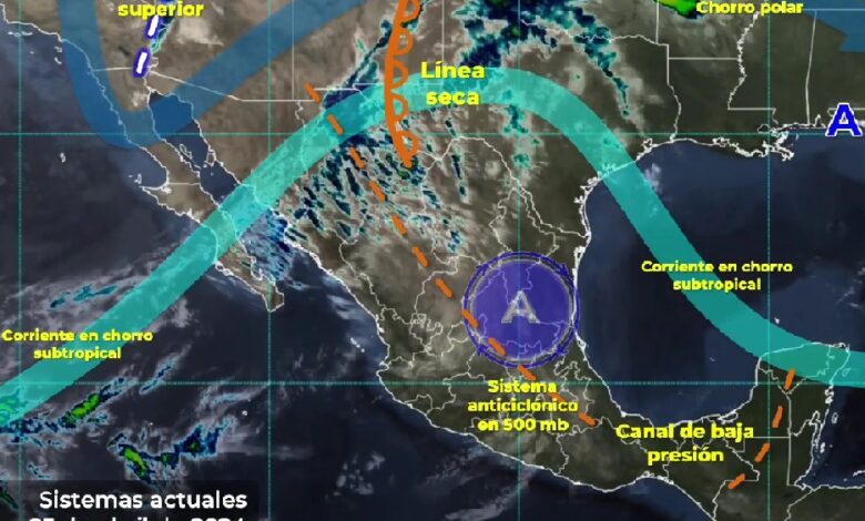 Canales de baja presión sobre el interior del país y la afluencia de aire húmedo procedente del Océano Pacífico, Golfo de México y Mar Caribe, originarán chubascos (de 5 a 25 milímetros [mm]) en Chiapas, Coahuila, Quintana Roo y Yucatán, así como lluvias aisladas (de 0.1 a 5 mm) en Baja California, Campeche, Ciudad de México, Estado de México, Hidalgo, Nuevo León, Oaxaca, Puebla, Querétaro, San Luis Potosí, Tabasco, Tamaulipas, Tlaxcala y Veracruz. Los chubascos podrían acompañarse de descargas eléctricas y condiciones para la caída de granizo.