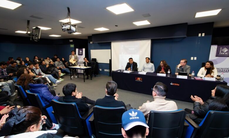 PACHUCA DE SOTO, 12 NOV /NEWS HIDALGO/.- En el marco de las “Jornadas por y para la Democracia” que organiza el Instituto Estatal Electoral de Hidalgo (IEEH), se llevó a cabo el Panel “Reflexiones posteriores a la Elección Judicial 2025”, dirigido a la comunidad estudiantil de la Licenciatura en Ciencias Políticas y Administración Pública del Instituto de Ciencias Sociales y Humanidades (ICSHu) de la Universidad Autónoma del Estado de Hidalgo (UAEH). Dicha actividad, fue moderada por el Dr. Guillermo Eduardo Lizama Carrasco, Profesor-Investigador en al Área Académica de Ciencias Políticas y Administración Pública del ICSHu, y tuvo como panelistas a la Consejera Presidenta de este Instituto María Magdalena González Escalona, así como a las Consejerías Electorales representadas por Alfredo Alcalá Montaño, Guillermo Corrales Galván, Carlos Emanuel Durán Marmolejo y Ariadna González Morales.
