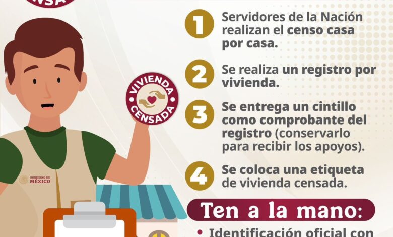 Abundó que una vez realizado el censo, los servidores de la nación entregan un cintillo del censo como comprobante del registro, el cual debe ser conservado por las personas censadas para recibir los apoyos, y posteriormente se coloca una etiqueta de “Vivienda censada”.