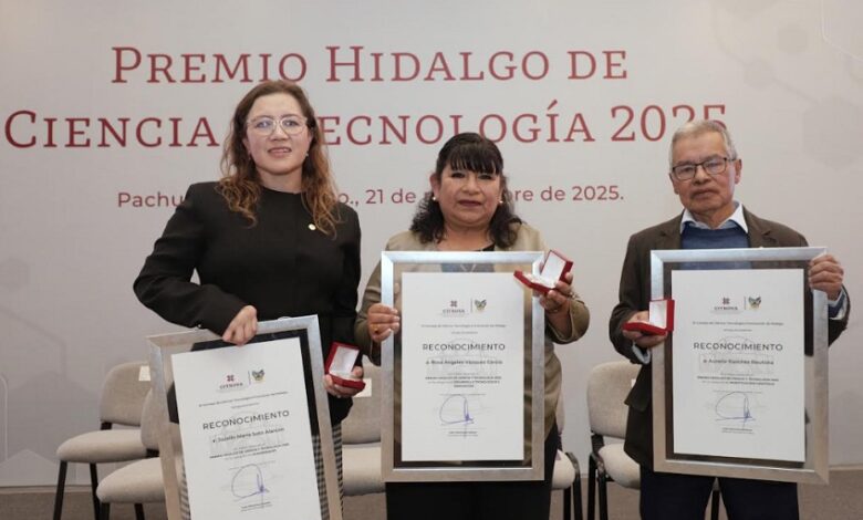 PACHUCA DE SOTO, 23 NOV/NEWS HIDALGO/.- Aurelio Ramírez Bautista, Rosa Ángeles Vázquez García y Jozelin María Soto Alarcón, investigadores de la Universidad Autónoma del Estado de Hidalgo (UAEH), fueron distinguidos con el Premio Hidalgo de Ciencia y Tecnología 2025, cada uno en una categoría diferente: Investigación Científica, Desarrollo Tecnológico e Innovación y Humanidades, por su trayectoria académica y su contribución al fortalecimiento del conocimiento.