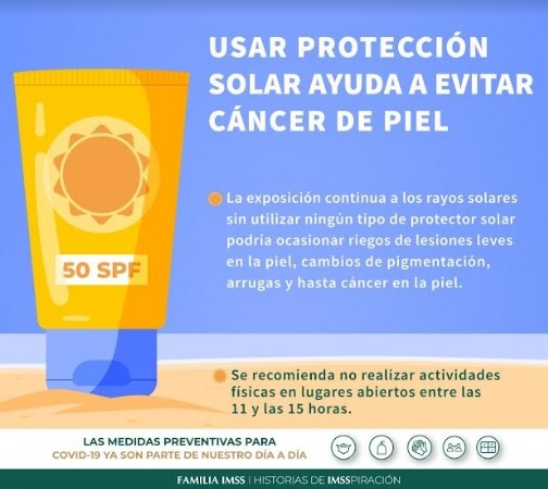 El IMSS en el estado señaló que la exposición continua a los rayos solares sin utilizar ningún tipo de protector solar podría ocasionar riesgos de lesiones leves en la piel, cambios de pigmentación, arrugas y hasta cáncer en la piel.