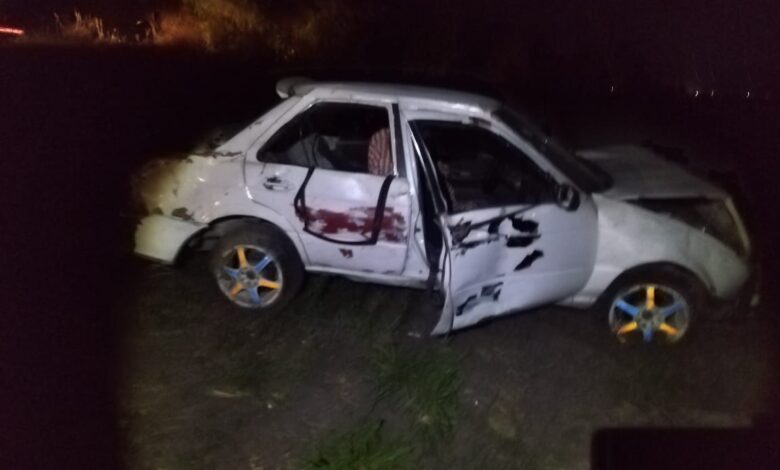 La unidad Nissan, Tsuru, color blanco, sin placas de circulación, se salió de la carretera y volcó, por lo que aparentemente el conductor y sus probables acompañantes habrían resultado lesionados, sin embargo no fueron hallados en el vehículo.