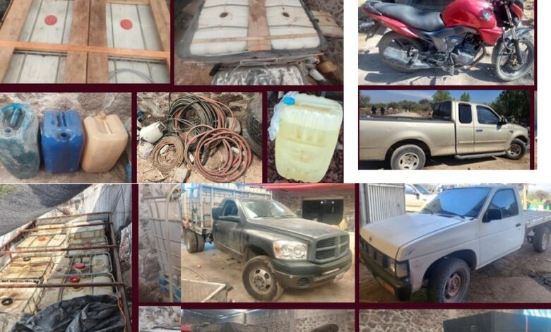 Durante la intervención, fue asegurado un masculino de 19 años de edad, vinculado con estas actividades ilícitas, además de 9 mil 890 litros de hidrocarburo, 60 contenedores de distintas capacidades y dos bombas presurizadoras, infraestructura utilizada para la extracción, almacenamiento y distribución ilegal del combustible.