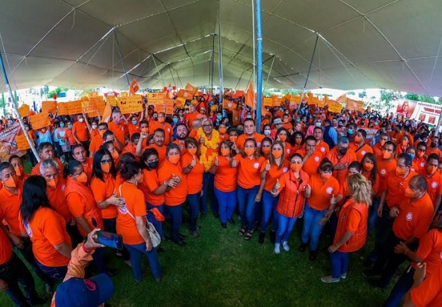 IXMIQUILPAN, 09 JUL/NEWS HIDALGO/.- El candidato de la planilla naranja, Julio Mayorga realizó un evento regional en el municipio de Ixmiquilpan, cabecera de la organización 1, bajo estrictos protocolos de bioseguridad ante más de 5 mil trabajadoras y trabajadores de la educación.
