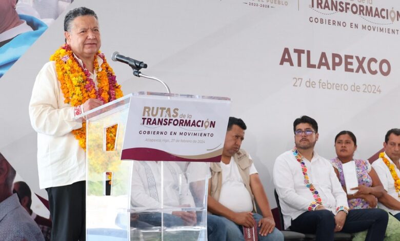 PACHUCA DE SOTO, 28 FEB/NEWS HIDALGO/.- En el marco de las Rutas de la Transformación-Gobierno en Movimiento en el municipio de Atlapexco, el titular del Ejecutivo en Hidalgo, Julio Menchaca Salazar, realizó la entrega de infraestructura, programas y estímulos económicos en beneficio de este municipio, y destacó que la administración que encabeza mantiene firme el compromiso de terminar con los rezagos a los que se enfrenta la población de esta región del estado.