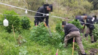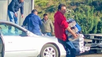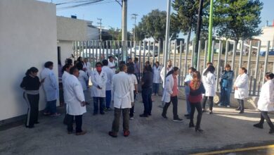 Los manifestantes portan mantas con leyendas que dicen» Justicia por la ejecución del compañero Mario Moreno López»