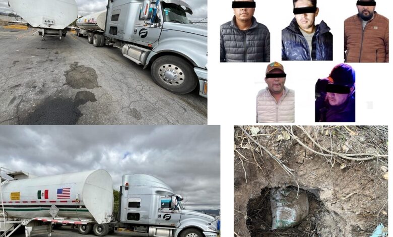 PACHUCA DE SOTO, 18 DIC /NEWS HIDALGO/.- En distintas acciones, la Secretaría de Seguridad Pública (SSPH) logró la detención de cinco personas vinculadas presuntamente con el trasiego de “huachicol”. Además, se incautaron tres pipas de amplia capacidad y se clausuró una toma clandestina en el municipio de Mineral de la Reforma.