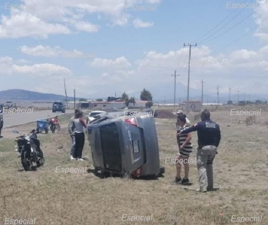 Recostado sobre su lado derecho quedó el automóvil del que paramédicos de Apan rescataron y les brindaron los primeros auxilios, sin embargo no ameritaron hospitalización.