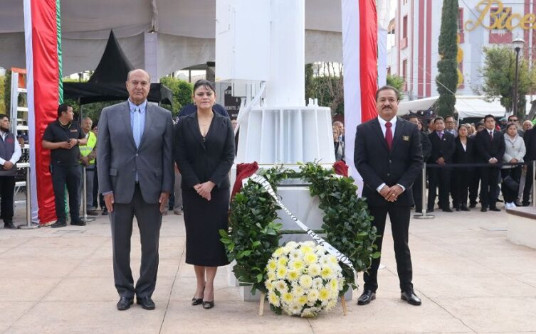 Como parte de las actividades conmemorativas, autoridades estatales y municipales participaron en el izamiento de bandera y guardia de honor