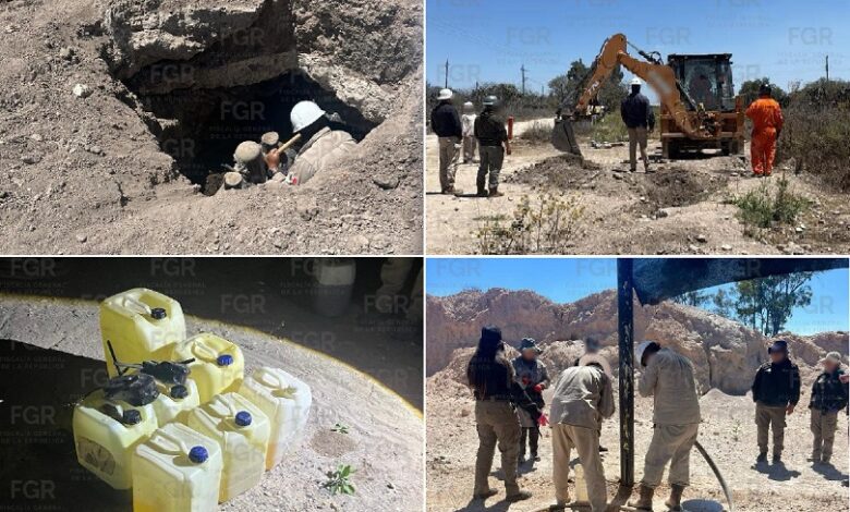 El Ministerio Público Federal (MPF) en coordinación con elementos de la PFM y del Centro Federal Pericial Forense, ambos de la Agencia de Investigación Criminal (AIC) llevaron a cabo la diligencia de cateo donde se localizaron dos tomas clandestinas conectadas de manera subterránea que derivaban a otro predio ubicado en la localidad de Maravillas.