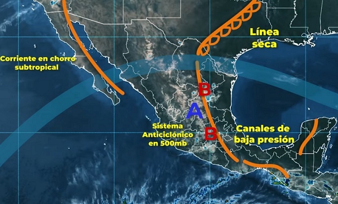 La onda de calor se origina debido a la presencia de un sistema anticiclónico que cubre la mayor parte del territorio nacional en niveles medios de la atmósfera, por lo que se recomienda a la población evitar la exposición prolongada a la radiación del sol, hidratarse adecuadamente, poner atención especial a enfermos crónicos, niños y adultos mayores, así como atender las indicaciones de las autoridades del sector Salud y de Protección Civil.