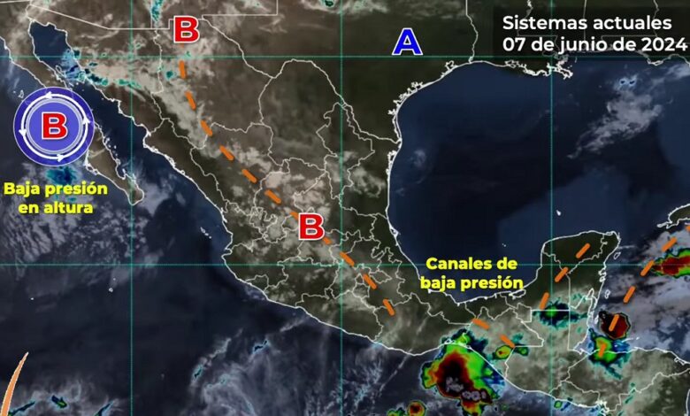 PACHUCA DE SOTO, 07 JUN/NEWS HIDALGO/.- Hoy, canales de baja presión sobre el norte, centro, sur y sureste de México, así como en la Península de Yucatán, inestabilidad en niveles altos de la atmósfera, un baja