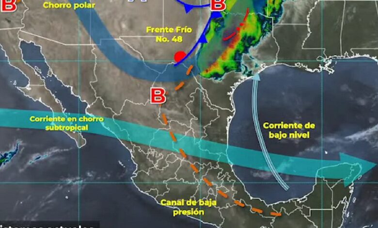 Asimismo, los sistemas expuestos anteriormente, originarán intervalos de chubascos (de 5 a 25 milímetros [mm]) en San Luis Potosí y Tamaulipas; así como lluvias aisladas (de 0.1 a 5 mm) en Coahuila y Nuevo León.