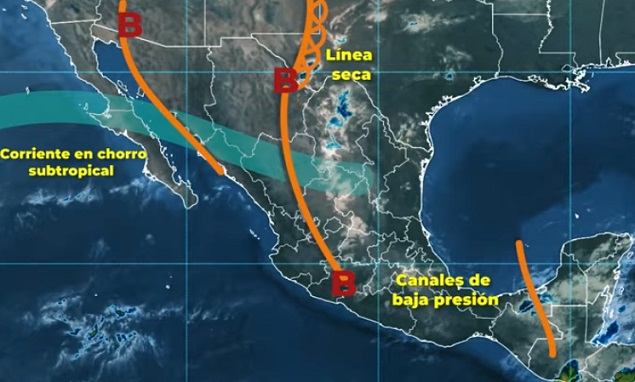 Las precipitaciones se acompañarán de descargas eléctricas, caída de granizo y vientos fuertes y serán generadas por una línea seca que se establecerá entre Chihuahua y Coahuila en interacción con la corriente en chorro subtropical, canales de baja presión y la entrada de aire cálido y húmedo proveniente de ambos océanos.