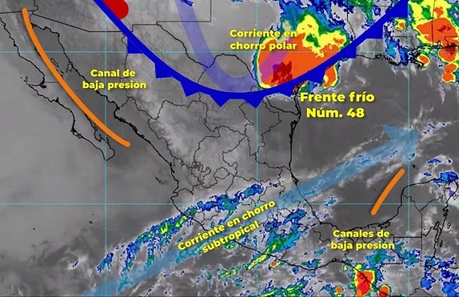 Las condiciones serán generadas por canales de baja presión extendidos sobre diferentes regiones del territorio nacional; la entrada de humedad proveniente del Océano Pacífico, reforzada por una zona de baja presión con alta probabilidad para desarrollo ciclónico localizada al sur de las costas de Oaxaca; inestabilidad en niveles altos de la atmósfera; el flujo de humedad procedente del Golfo de México; el Frente Frío Número 48 (fuera de temporada) y la corriente en chorro polar.