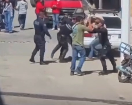 PACHUCA DE SOTO, 03 MAR /NEWS HIDALGO/.- En un video quedo captado el momento que policías del municipio de Zacualtipan en Hidalgo y varios sujetos se dieron un cerrón en plena calle de la zona centro de esta población.