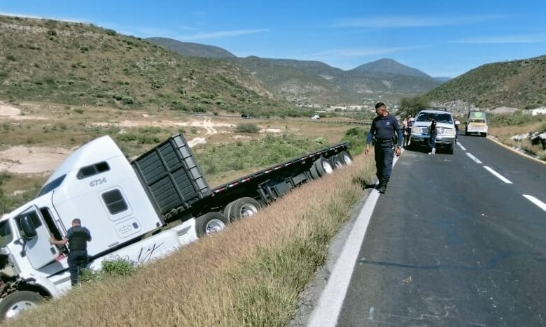 Pierde el control conductor de tráiler en la carretera México-Laredo