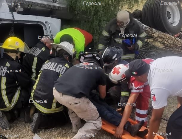 El chófer del camión quedó prensado por lo que fue necesario que bomberos del estado lo rescataran del interior de la cabina que terminó debajo de un árbol, frente alas instalaciones del C5.