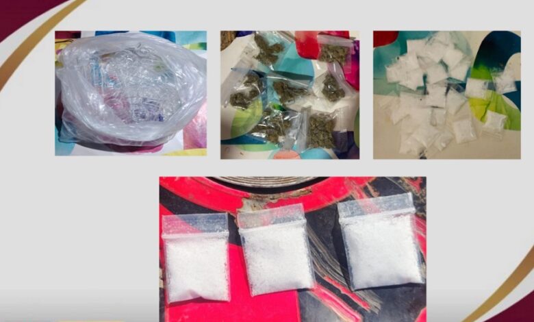 El operativo permitió también el aseguramiento de 240 dosis de presunta marihuana, 140 dosis de sustancia granulada con características del cristal, dos básculas, diversas pipas de cristal y un arma corta de fabricación artesanal junto con un cartucho útil calibre 22. También fue decomisada una motocicleta, presuntamente utilizada para los actos delictivos.