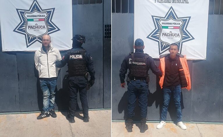 Policía municipal de Pachuca detiene a sujetos con probable droga