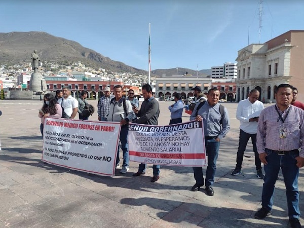 PACHUCA DE SOTO, 01 MAR/NEWS HIDALGO/.- Un grupo de policías de investigación del estado, se manifiestan en Plaza Juárez frente a palacio de gobierno, los agentes exigen mejores condiciones laborales.