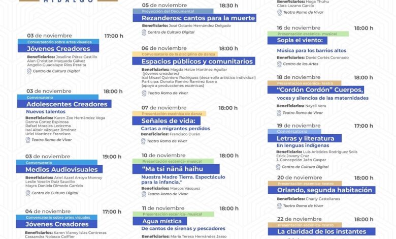 La programación detallada, con sedes, fechas y participantes, será publicada próximamente en los canales oficiales de la Secretaría de Cultura.