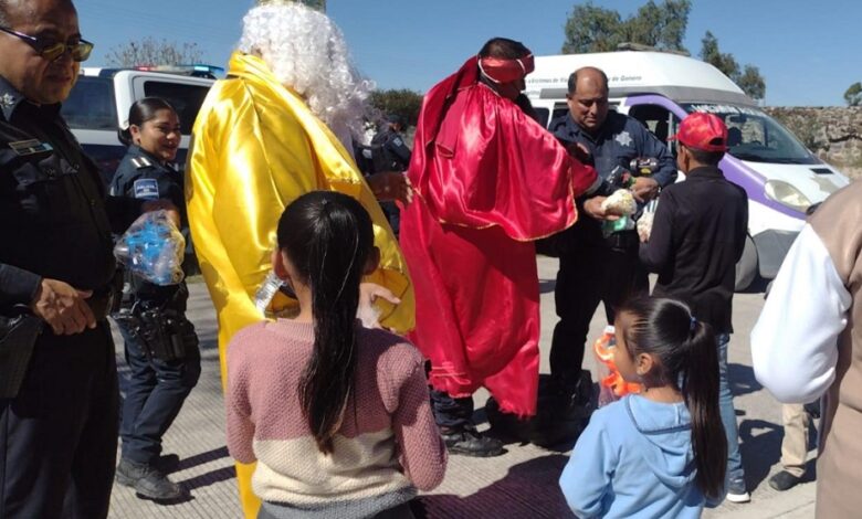 PACHUCA DE SOTO, 06 ENE/NEWS HIDALGO/.- Elementos de la Secretaria de Seguridad Pública y Tránsito Municipal de Tula a través de su área de prevención del delito, llevaron sonrisas e ilusión a niños y niñas de diferentes comunidades de esta demarcación mediante el Poli juguetón en el marco de Día de Reyes mediante el cual entregaron juguetes a los menores.