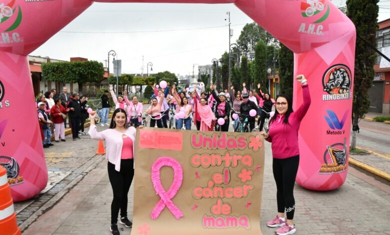 Como primera actividad del programa conmemorativo al mes de sensibilización sobre el cáncer de mamá, se llevó a cabo una rodada ciclista rosa en calles cercanas a la estación del ferrocarril.
