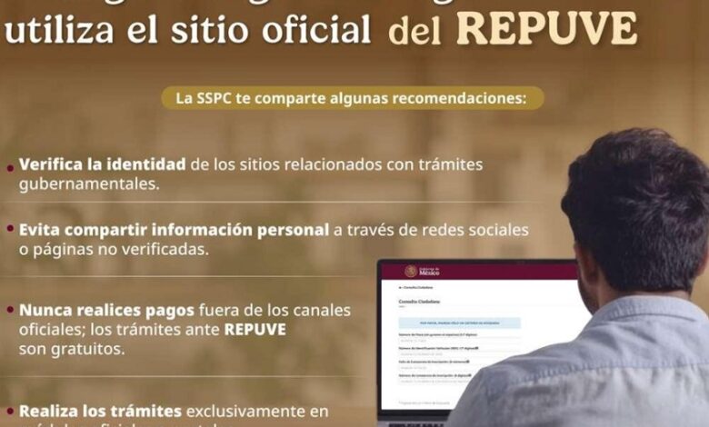 CIUDAD DE MEXICO, 26 OCT/NEWS HIDALGO/.- La Secretaría de Seguridad y Protección Ciudadana (SSPC), a través de la Unidad de Inteligencia, Investigación Cibernética y Operaciones Tecnológicas, emite recomendaciones para evitar ser víctima de fraudes en páginas que suplantan la identidad del Registro Público Vehicular (REPUVE).