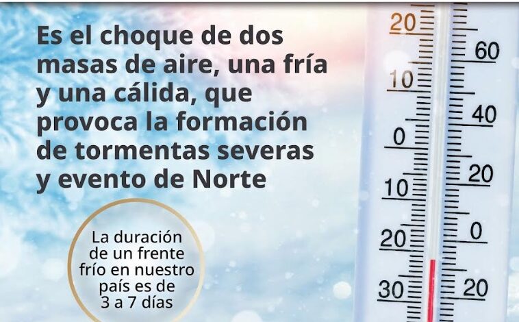 De acuerdo con el Servicio Meteorológico Nacional, este sistema se extenderá sobre la Mesa del Norte y tendrá interacción con la corriente en chorro subtropical, propiciando un marcado descenso de temperatura, rachas fuertes de viento, lluvias y chubascos en el norte y noreste del país.