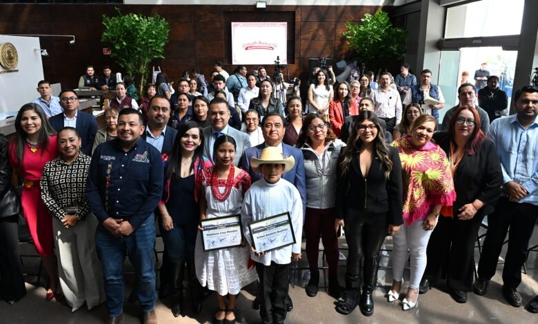 PACHUCA DE SOTO, 14 ABR /NEWS HIDALGO/.- En el marco del Día Nacional del Tenango, conmemorado cada 10 de abril, y del Día del Niño y la Niña, celebrado cada 30 de abril, el Congreso del Estado de Hidalgo reconoció a Malintsin Cruz Méndez y Rafael Bautista Bautista, jóvenes de Atlapexco bailarines de huapango, quienes representan con orgullo las tradiciones de Hidalgo a nivel nacional.