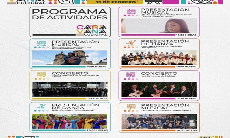 PACHUCA DE SOTO, 09 FEB/NEWS HIDALGO/.- Este domingo 15 de febrero, en el Jardín Principal de Mixquiahuala de Juárez, inician las Caravanas culturales, un programa que recorre distintos municipios de las 10 regiones culturales del estado con el objetivo de acercar a la población una oferta diversa de presentaciones escénicas, expresiones tradicionales, gastronomía y artesanía local.