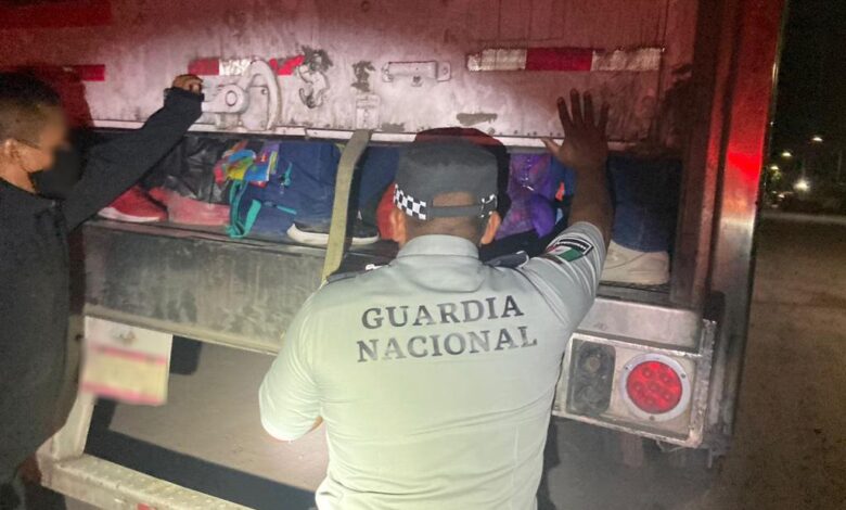 Al abrir la puerta de la caja del tractocamión, el personal de la Guardia Nacional observó a varias personas, entre ellas menores de edad, que se identificaron como migrantes, quienes no acreditaron su estancia legal en el país.