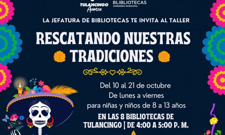 TULANCINGO DE BRAVO, 03 OCT /NEWS HIDALGO/.- La Jefatura de Bibliotecas de Tulancingo del gobierno encabezado por Jorge Márquez Alvarado, invitan al taller: “Rescatando Nuestras Tradiciones”. Se desarrollará, previo al Día de Muertos, donde la lectura y la creatividad serán los ingredientes principales.