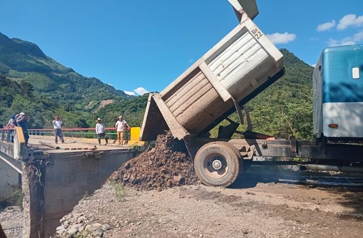 • Huautla:  Inicio de los trabajos de construcción de la losa provisional de acceso al puente El Ixtle con un tractor a través de elementos de la Residencia Regional de Huejutla de Reyes.
